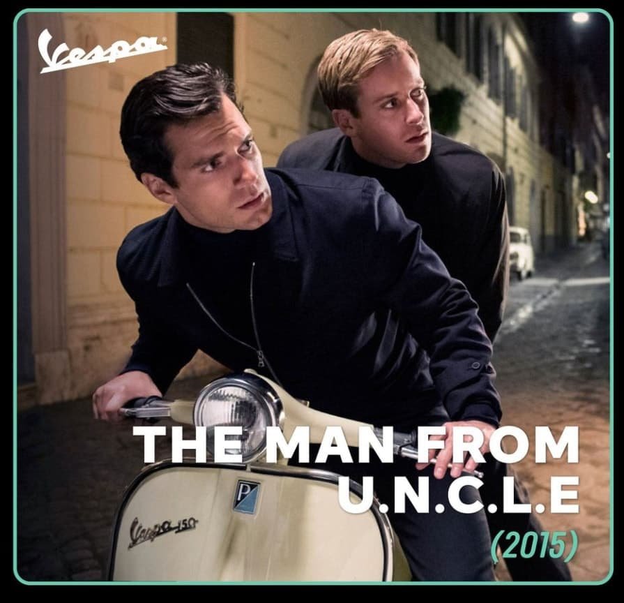 Incontáveis atores e atrizes já pilotaram Vespas em vários filmes – sejam eles de comédia, drama, ação ou comentário social – toda vez que a Vespa faz uma aparição nos filmes, ela tem o potencial de estrelá-lo ou roubar a cena. Filmes incluem ‘Caro Diario’ (1993) de Nanni Moretti, em que a estrela monta uma Sprint 150 para um episódio inteiro (intitulado ‘In Vespa’, na verdade), ‘Alfie, o sedutor’ (2004), em que Jude Law passeia pelas ruas de Manhattan em sua Vespa branca e azul, em ‘A intérprete’ (2005), de Sydney Pollack, com Nicole Kidman pilotando sua Vespa amarela como meio de transporte preferido nas ruas de Nova York.